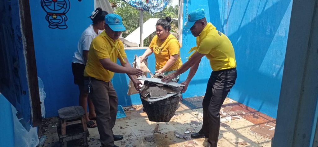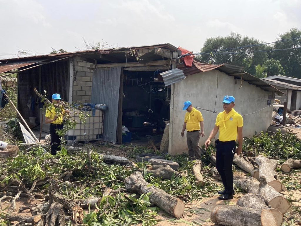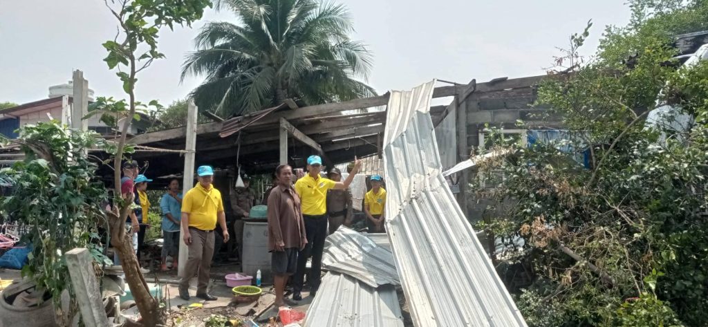 พ.ต.ท.สมเจต ป้อมภา สวป.(ชส.)ฯ พ.ต.ท.ไพัตน์ บุญทะจิตสว.อก.ฯ พร้อมด้วย ข้าราชการตำรวจจิตอาสา และข้าราชการตำรวจฯ ฝ่ายปกครอง ผู้นำชุมชน ร่วมกิจกรรมจิตอาสาภัยพิบัติวาตภัย บ้านเรือนประชาชนได้รับความเสียหายมาก 1 หลังคาเรือน เสียหายเล็กน้อย 13 หลังคาเรือน รวมจำนวน 14 หลังคาเรือน