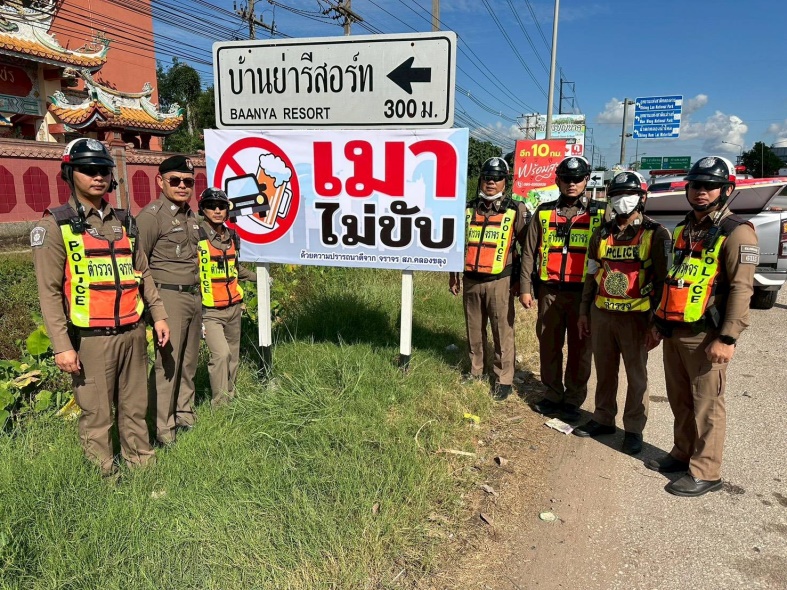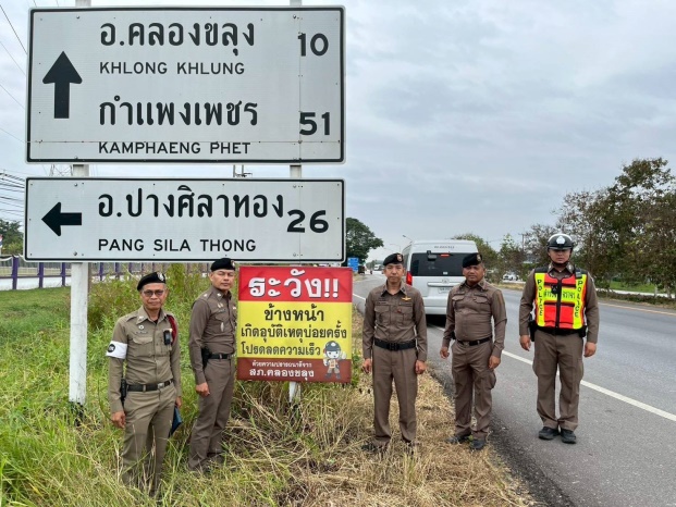 ติดตั้งป้าย ชะลอความเร็ว ,เมาไม่ขับ,รณรงค์สวมหมวกนิรภัย100% ป้ายกวดขันวินัยจราจร บริเวณทางร่วม ทางแยก