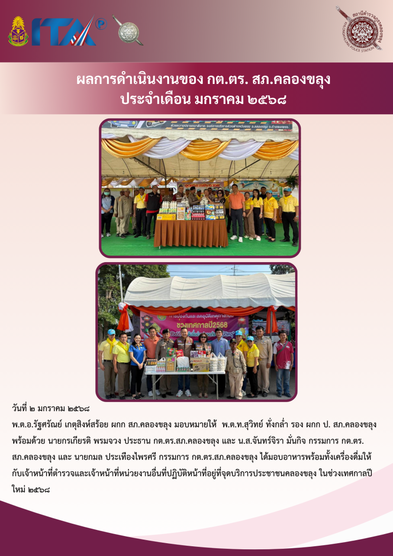 ผลการดำเนินงานของ กต.ตร.สภ.คลองขลุง ประจำเดือนมกราคม 2568
