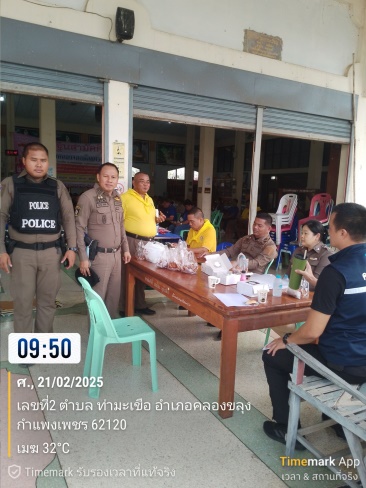 วันนี้ 21 กุมภาพันธ์ 2568 เวลาประมาณ 09.50 น. ภ.6 ภ.จว.กำแพงเพชร สภ.คลองขลุง เรียนผู้บังคับบัญชา ชุดปฏิบัติการโดยร.ต.อ.ไทยรัฐ ตุ้ยโชติ รองสวป.ฯ ปฏิบัติหน้าที่ร้อยเวร20 พร้อมด้วย ด.ต.มานนท์ น้อยคง ผบ.หมู่(ป.)ฯปฏิบัติหน้าที่สายตรวจรถยนต์ชุดที่2,นสต.รุ่นที่14(ฝึกหัด) ,สายตรวจรถจักรยานยนต์ตำบลท่ามะเขือดูแลความสงบเรียบร้อยและรักษาความปลอดภัยผู้เข้ารับการอบรมโครงการสร้างเครือข่ายการมีส่วนร่วมของประชาขน ในการแก้ไขความเดือดร้อนของประชาชนในระดับสถานีตำรวจเพื่อสนับสนุนการป้องกันอาชญากรรม ประจำปีงบประมาณ 2568 ณ วัดหนองจอก ต.ท่ามะเขือ อ.คลองขลุง จ.กำแพงเพชร จึงเรียนมาเพื่อโปรดทราบ