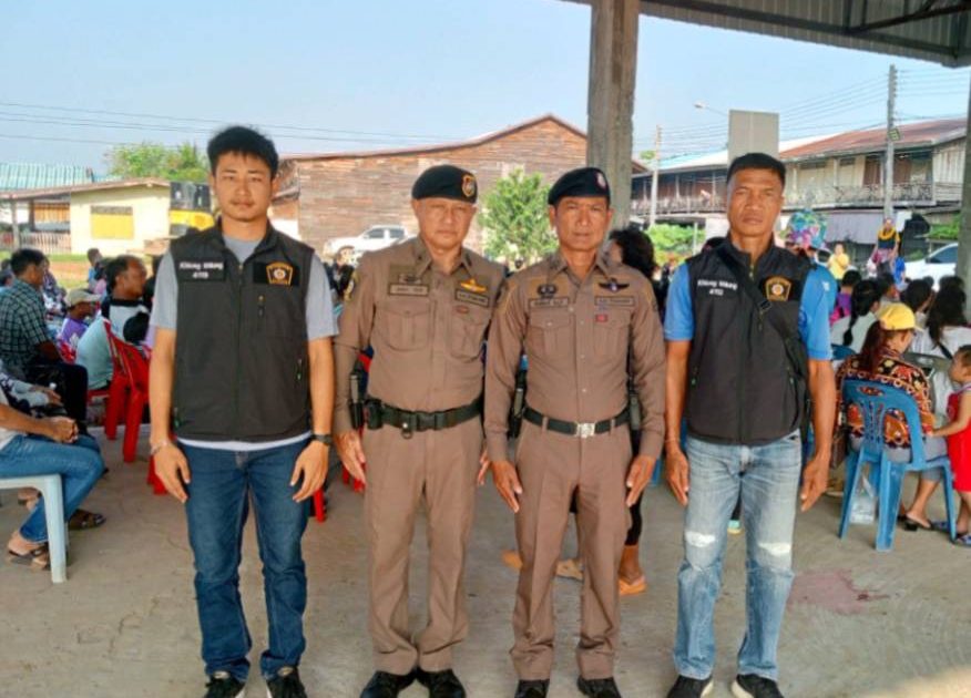 วันนี้ 11 พฤศจิกายน 2567 เวลา 08.30 น. พ.ต.อ.รัฐศรัณย์ เกตุสิงห์สร้อยผกก.สภ.คลองขลุง พ.ต.ท.เชาวลิต รัมวุฒิ รอง ผกก.สส.ฯ พ.ต.ท.สุวิทย์ ทั่งกล่ำ รอง ผกก.ป.ฯ เรียน ผู้บังคับบัญชา สายตรวจวังยาง/ชุดสืบสวนร่วมกันออกพื้นที่ดูแลความสงบเรียบร้อย การหาเสียง นายก อบจ. ผู้สมัครเบอร์ 1 นายสุนทร รัตนากร ในพื้นที่ ศาลาริมน้ำ ม.1 ต.วังยาง คลองขลุง จ.กำแพงเพชร – มีผู้มาร่วมฟังปราศัย 2 ตำบล ต.วังยาง และต.วังแขม ประมาณ 450 คน – เหตุการณ์ทั่วไปปกติ