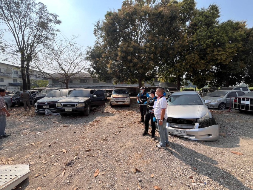 ร้อยเวรสอบสวนพร้อมเจ้าหน้าที่พิสูจน์หลักฐานกำแพงเพชร ตรวจสอบรถยนต์