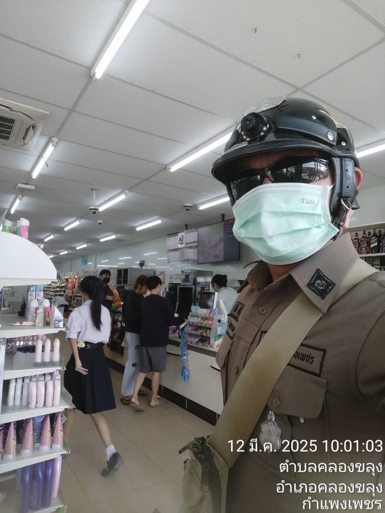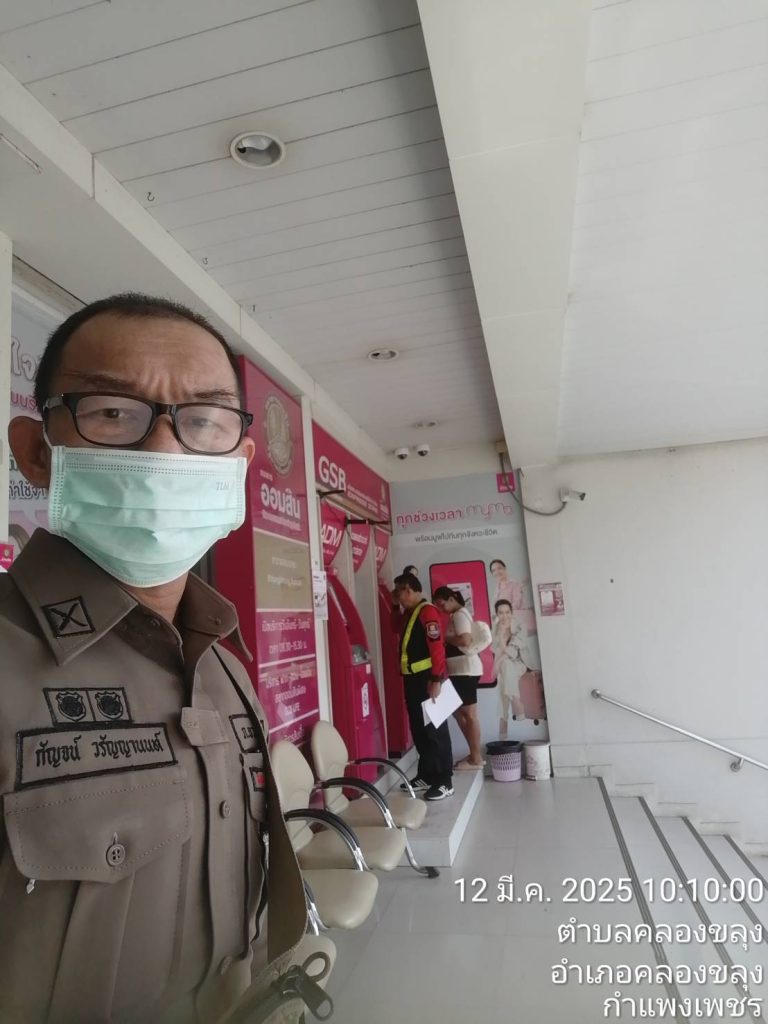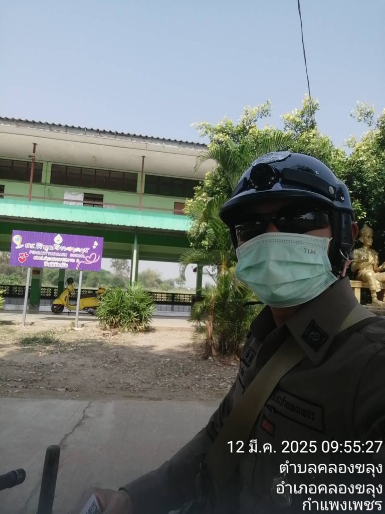 ออกตรวจป้องกันเหตุในพื้นที่ตำบลคลองขลุง 14 มีนาคม 2568 โดย Khlongkhlung / ข่าวประชาสัมพันธ์ข้อมูลข่าวสาร,ประชาสัมพันธ์ผลการดำเนินงาน/ปฏิบัติราชการ แต่ละสายงาน,ผลการปฏิบัติงานของแต่ละสายงาน,ผลการปฏิบัติงานของงานป้องกันปราบปราม วันที่ 12 มีนาคม 2568เวลาประมาณ 10.00 น ภ.6 ภ.จว.กำแพงเพชร สภ.คลองขลุง เรียนผู้บังคับบัญชา ภายใต้การอำนวยการของพ.ต.อ.รัฐศรัณย์ เกตุสิงห์สร้อย ผกก.สภ.คลองขลุงพ.ต.ท.สุวิทย์ ทั่งกล่ำรอง ผกก.ปฯ พ.ต.ท.เด่นพงษ์ อนันตวุฒิ สวป.ฯ ชุดปฏิบัติการโดย ด.ต.กัญจน์ วรัญญูานนท์ ตำแหน่งผบ.หมู่ (ป.) สภ.คลองขลุง ปฏิบัติหน้าที่ประจำสายตรวจตำบลคลองขลุงออกตรวจในเขตพื้นที่รับผิดชอบดังนี้ - โรงเรียนพิบูลวิทยาคาร - เซเว่นคลองขลุง - ตู้ ATM ธนาคารออมสิน, ธกส.คลองขลุง ผลการปฏิบัติ เหตุการณ์ทั่วไปปกติ Post Views: 41 FacebookFacebookXXLINELine