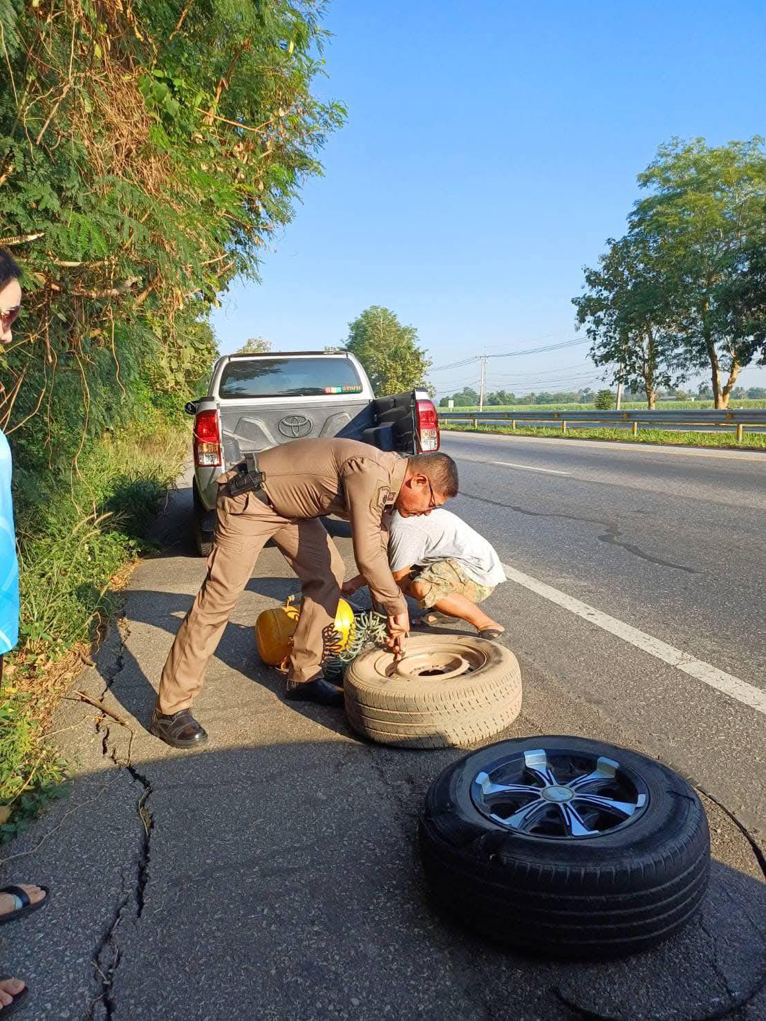 ช่วยเหลือประชาชนรถยนต์ยางแตก