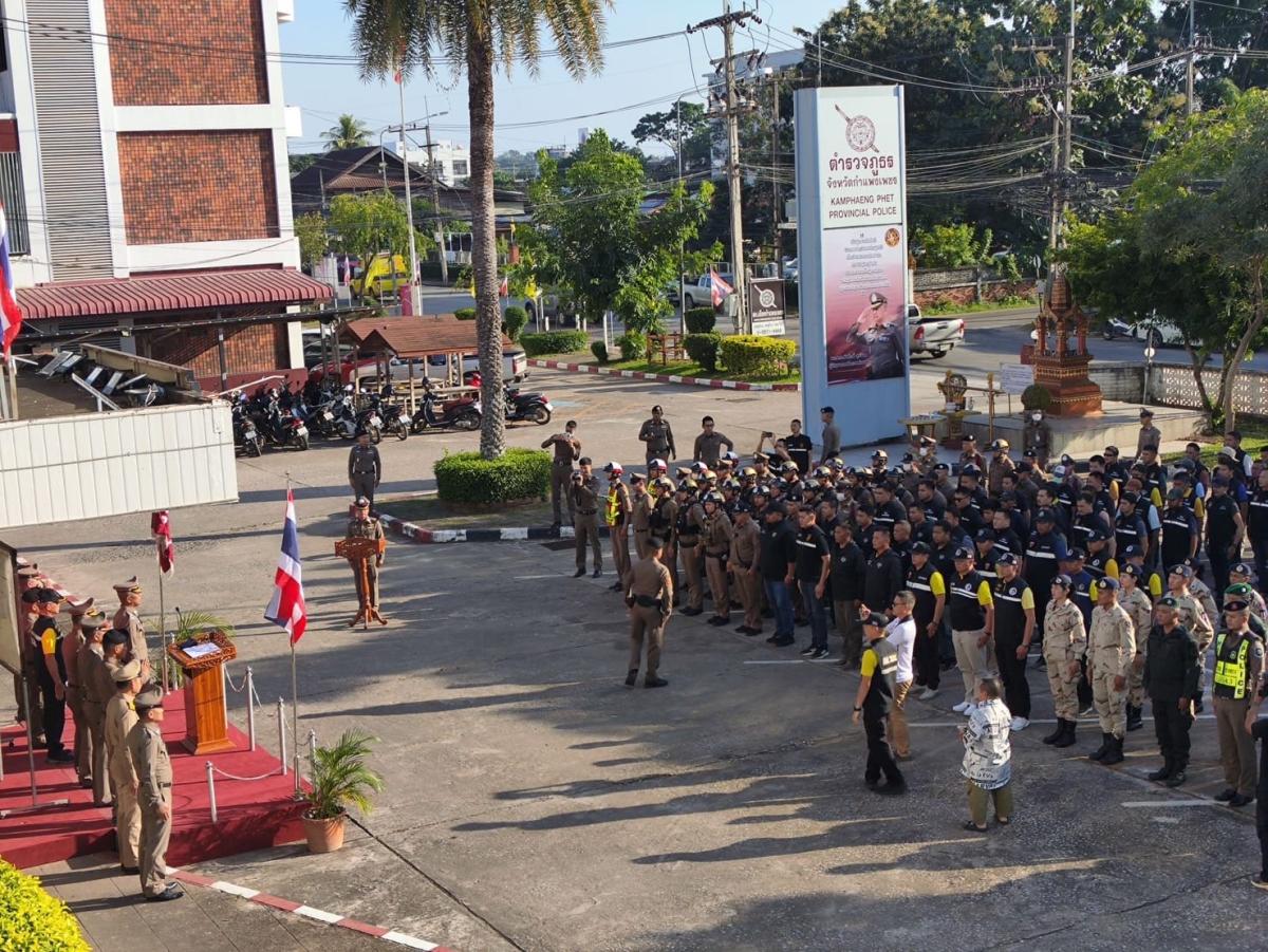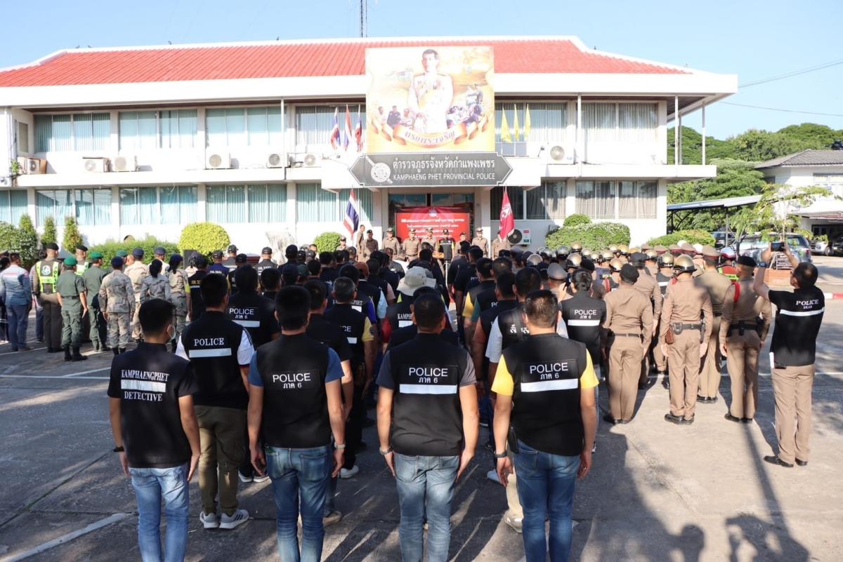 พร้อมด้วย พล.ต.ต.โอภาส คงเมือง ผบก.ภ.จว.กำแพงเพชร, รอง ผอ.รมน.จว.กำแพงเพชร (ท.), พ.ต.อ.ชยินธร สุคนธร รอง ผบก.ภ.จว.กำแพงเพชร , พ.ต.อ.เอนก จันทร์ศร รอง ผบก.ภ.จว.กำแพงเพชร, พ.ต.อ.ไพโรจน์ บุญยะพาส รอง ผบก.ภ.จว.กำแพงเพชร, พ.ต.อ.ชนะชัย เสรีพงศ์ รอง ผบก.ภ.จว.กำแพงเพชร, พ.ต.อ.นเรศ พูลหน่าย รอง ผบก.ภ.จว.กำแพงเพชร, ป้องกันจังหวัดกำแพงเพชร, พ.ต.อ.อดุลยศักดิ์ พูลเขียว ผกก.(สอบสวน)กลุ่มงานสอบสวน ภ.จว.กำแพงเพชร, ตม.จว.กำแพงเพชร, ตร.ท่องเที่ยว จว.กำแพงเพชร, ตร.ทางหลวง จว.กำแพงเพชร, อส.ตร., กู้ภัยข่าวภาพ จว.กำแพงเพชร และหน่วยงานที่เกี่ยวข้อง