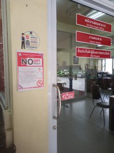 – ติดไว้ในจุดบริการของสถานี เพื่อให้ประชาชนทราบว่า หน่วยงานประกาศว่าเจ้าหน้าที่ทุกคนในสังกัดไม่รับของขวัญหรือของกำนัลจากการปฏิบัติหน้าที่ และต่อต้านการรับสินบน โดย มี พ.ต.อ.รัฐศรัณย์ เกตุสิงห์สร้อย ผกก.สภ.คลองขลุง หัวหน้าหน่วยงานประกาศ