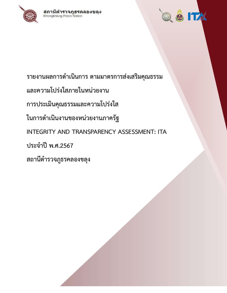 8.1 รายงานการประชุมการขับเคลื่อนและกำกับติดตามการประเมินคุณธรรมและความโปร่งใสในการดำเนินงานของหน่วยงานภาครัฐ (Integrity & Transparency Assessment : ITA)ของสถานีตำรวจภูธรคลองขลุง